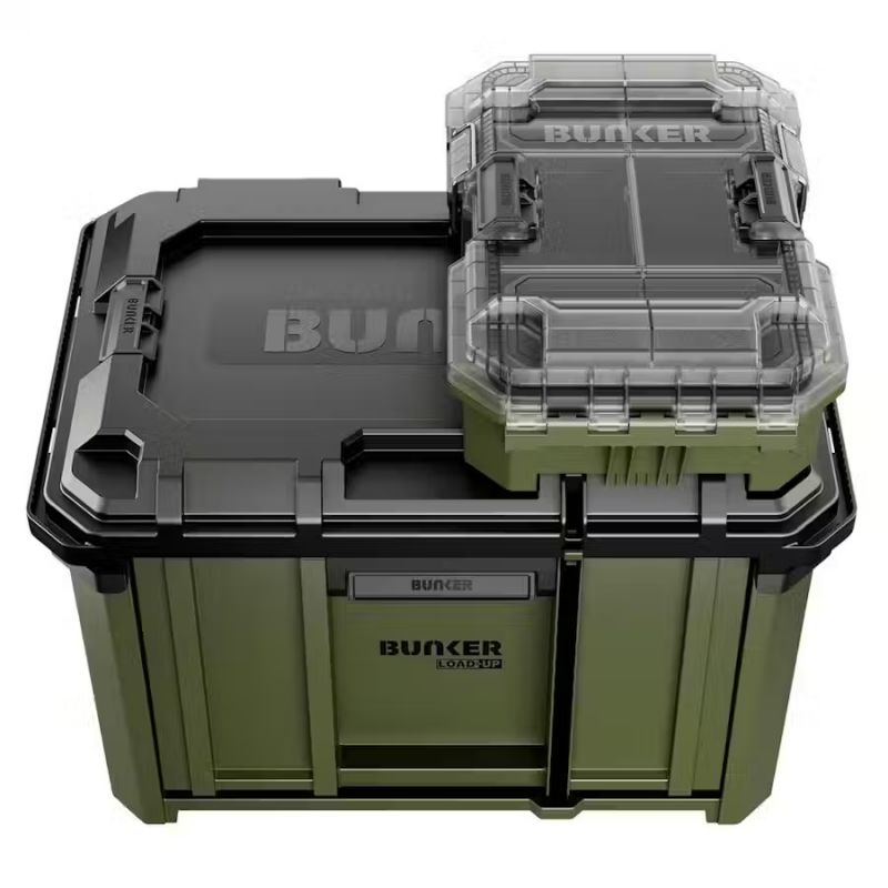 - The BUNKER Load-Up Stacking Storage System offers the ultimate solution for organising, transporting, and securing your tools. Its modular design enables you to combine tool boxes, organisers and crates to create a customised stacking system that meets your specific needs.