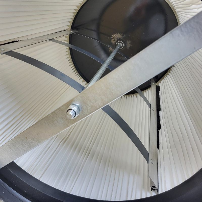- To ensure the filter stays unclogged without any deterioration in performance the filter includes an internal cleaning device. Gently rotating the handles, moves the internal paddles which clean the inside of the filter and prevent clogging.