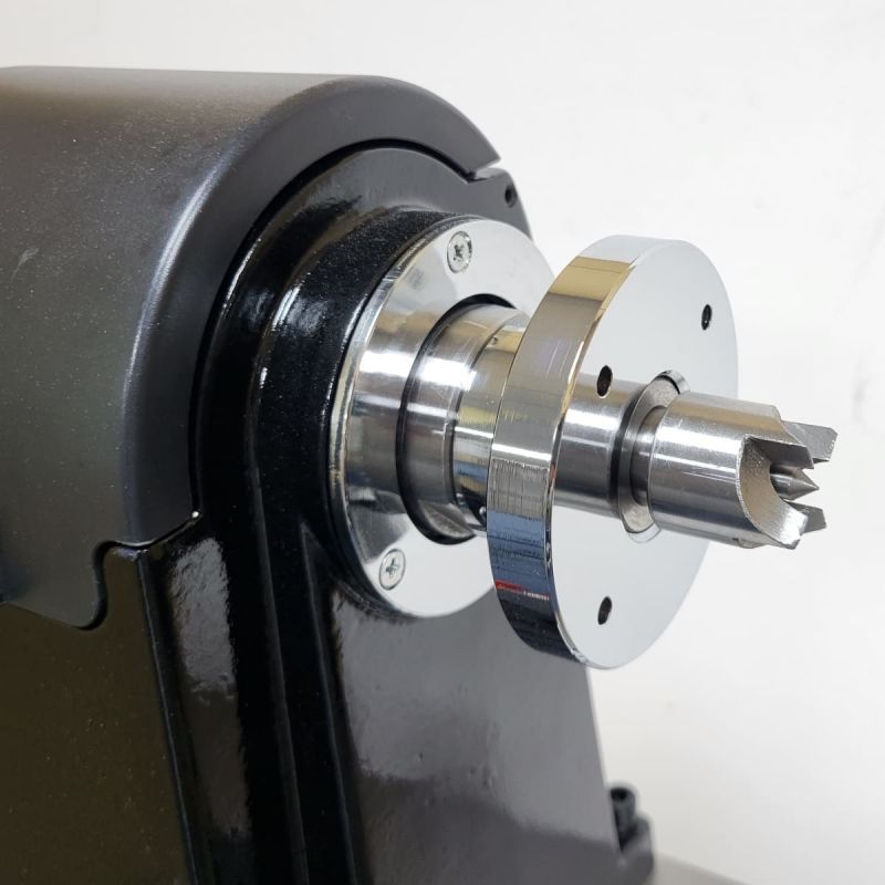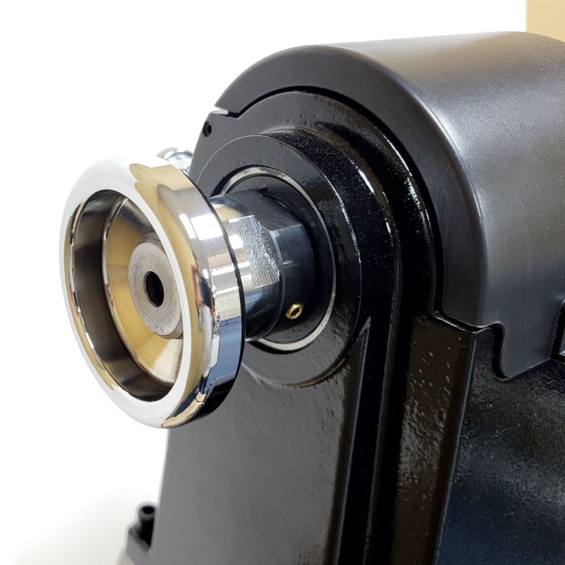 - The rotating handwheel, fitted to the left hand side of the headstock, can be removed, revealing another spindle thread of M33 x 3.5 DIN800. A scroll chuck can be fitted to this side for outboard bowl turning with an increased capacity of up to 468mm (18").
