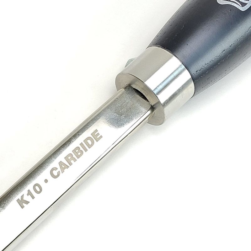 - The round steel shaft sits comfortably on the the tool rest. It is 10mm diameter with enough strength to eliminate vibration from the cutting tip.