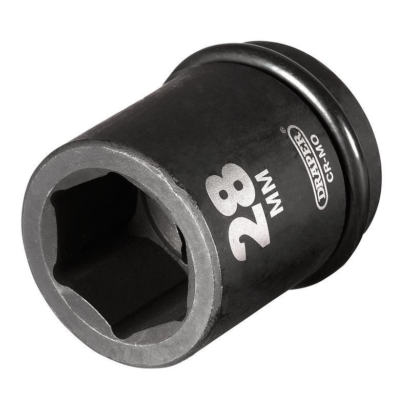 • These Draper Hi-TORQ® 6-point impact sockets are forged from hardened chrome molybdenum steel. Black phosphate finish for corrosion protection. For use with electric or pneumatic impact wrenches with a 3/4" drive. Supplied with ring and pin.
