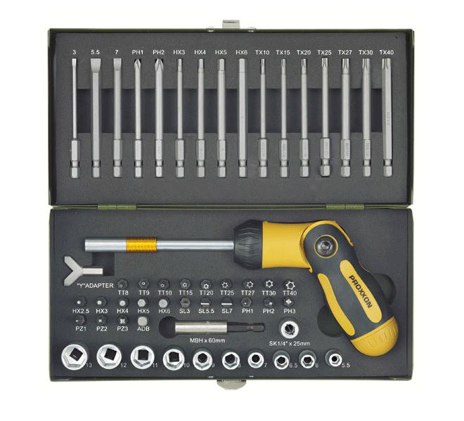 Proxxon Screwdriver Set 54pc with Foldable Ratchet Screwdriver - 23104