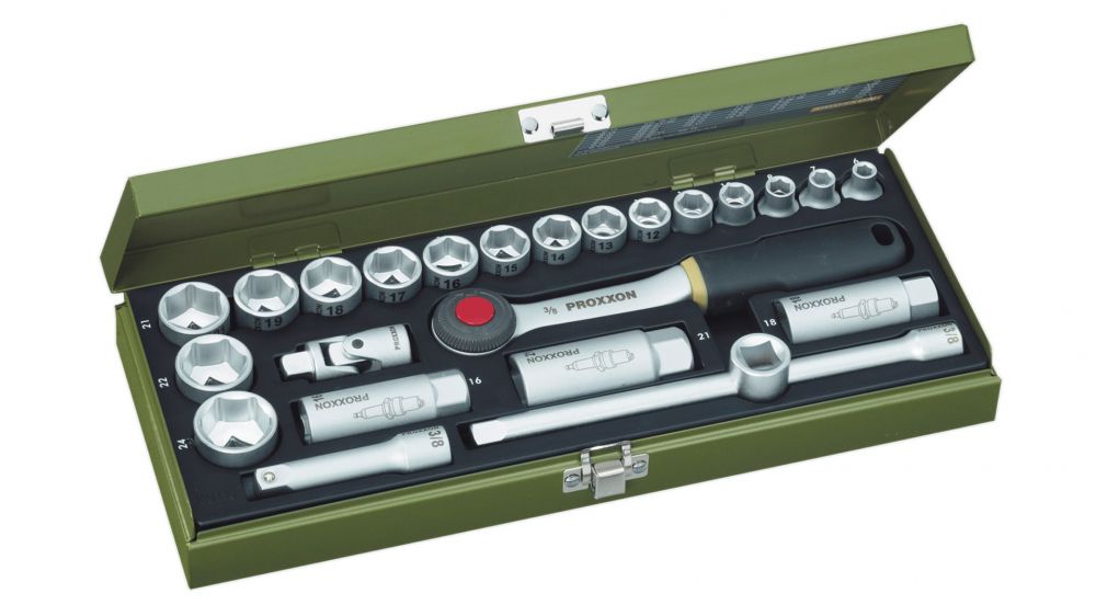 Proxxon Socket Set with Ratchet - 24pc 3/8" Drive