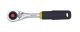 - With reverse feature directly on ratchet mechanism. Several of the 52 teeth engage simultaneously for transferring extremely high torque. Quick-release button for releasing sockets instantly. Head and shaft forged from one piece of CrV steel. Double nickel-plated with matt chrome-plated finish. Grip of oil and acid-resistant TPR (thermoplastic rubber) with useful hanging hole.