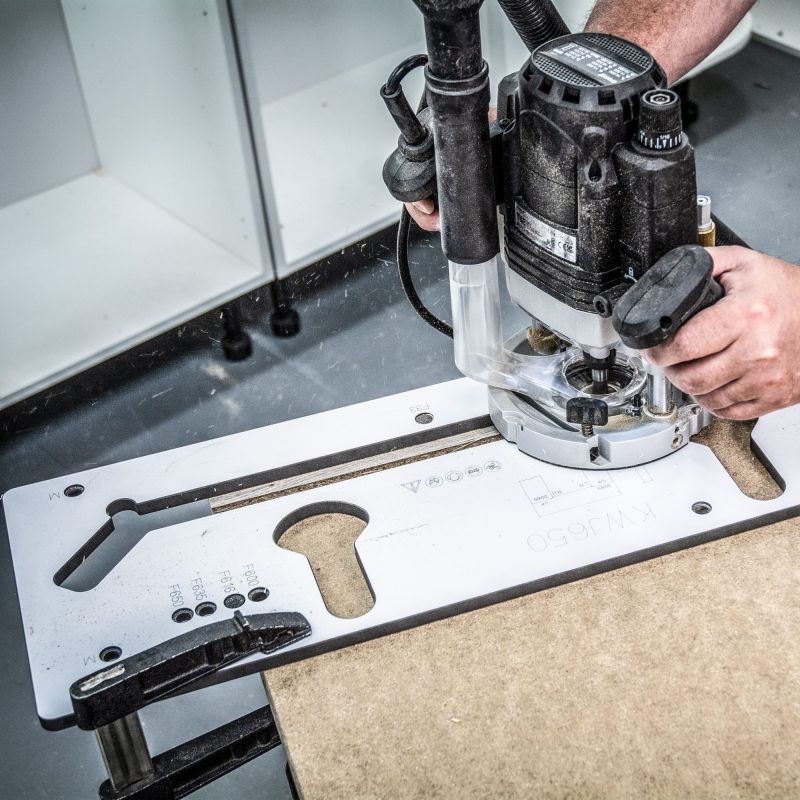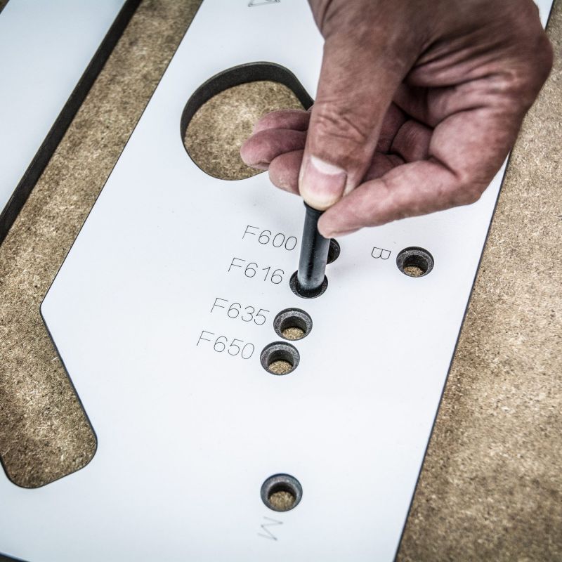 - Indexed Backsets for 600, 616, 635, and 650mm worktops allow the female joint to be setup quickly.