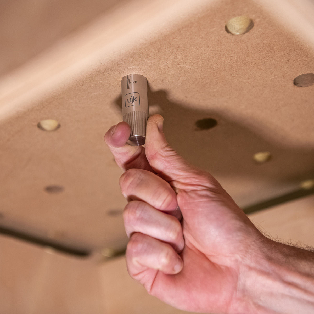 These stainless steel guide rail dogs, hidden beneath the rail, offer superior security and precision. The guide rail dogs prevent saw cutting across other dog holes. Tee-bolt design fits into the rail’s Tee-slot, replacing the need for rail clips. The knurl on the lead taper helps to lock the dog to the rail. Laser-etched 0-75mm scale for wood thickness measurement. Supplied in a pack of 2 with split stop collars to set the wood thickness.