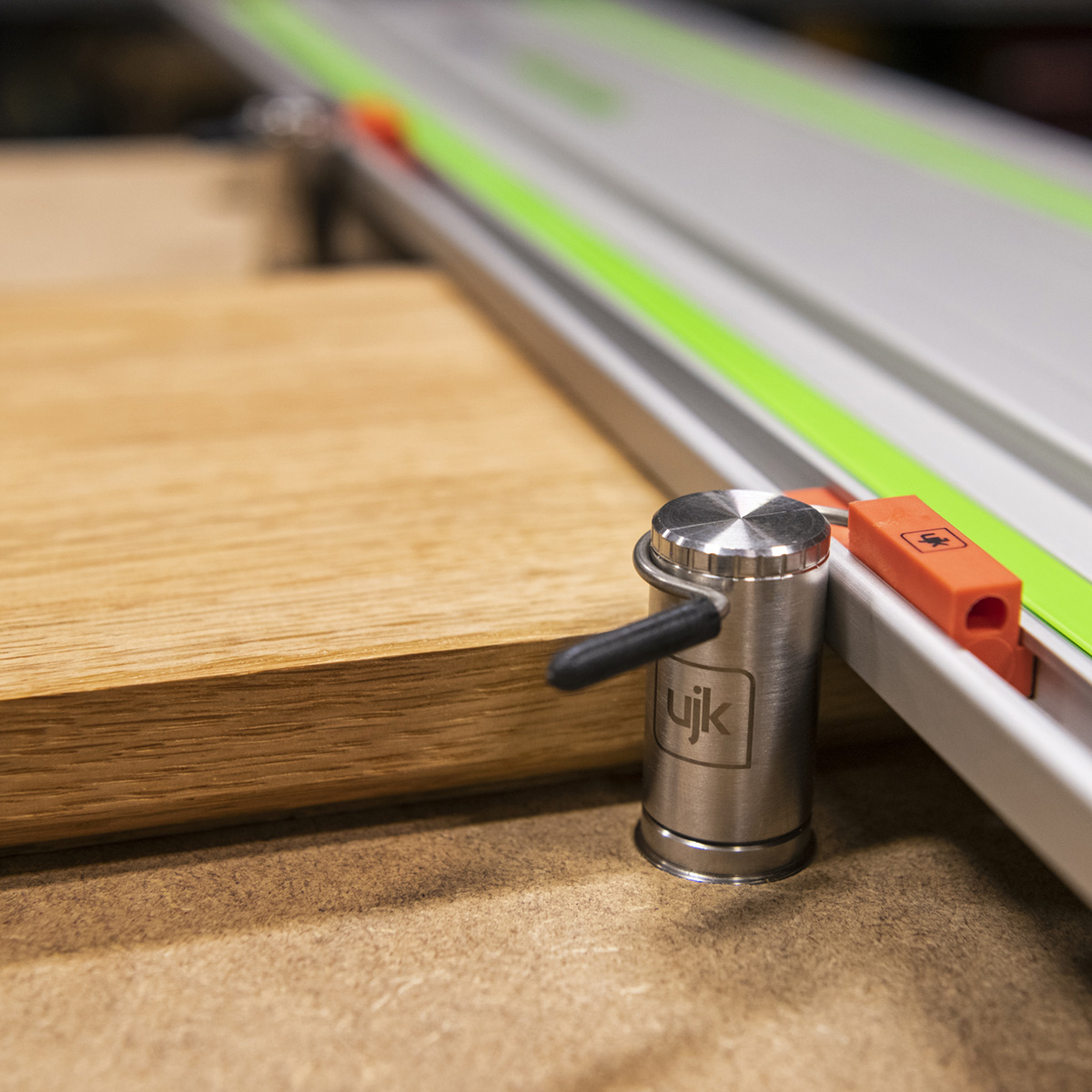 CNC machined from 303 stainless steel, they feature the same clever locking system as the UJK Super Dog. A quick twist locks the dog firmly in place, taking up any tolerance in the hole and ensuring rock-solid positioning. The included chamfer ring guarantees a perfect 90° alignment to your work surface and prevents the dog from slipping through before adjustment. Supplied as a pair with a 40mm projection, they’re fully compatible with UJK Multifunction Workbenches and Festool MFT/3 tables.