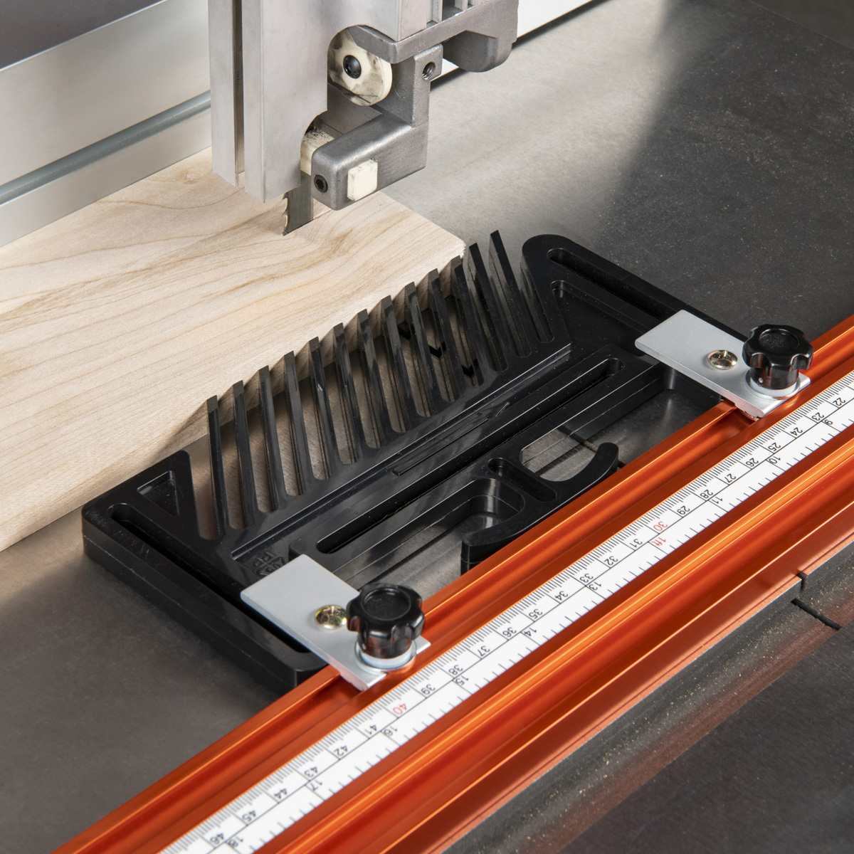This featherboard, clamps into the T-slot of a UJK Progrip clamp. Once assembled you can fit the clamp along with the featherboard onto a router table, or bandsaw table. This arrangement allows you to position the featherboard in the best possible position to apply sufficient pressure on your workpiece, holding against the machine's fence. The UJK featherboard helps with accurate machinery and is a useful safety aid. N.B. Colour may vary.
