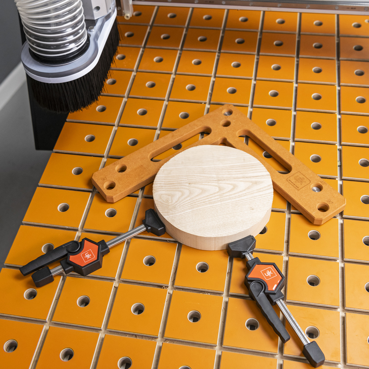 The UJK MFT Horizontal Quick Clamp are exactly that, quick to use, but with the same strength and precision. Specifically designed for use with 20mm dog holes on MFT-style workbench, these quick clamps feature a low-profile design, allowing for routing, sanding, sawing, or drilling without difficulty. An opposing textured clamping block enhances the grip further on the material, Polymer rubber pads protect your work surface and the cam action lever mechanism ensures no slipping under load. These clamps are a perfect addition to the UJK Parf MkII guide system, fitting seamlessly with 20mm dog holes.