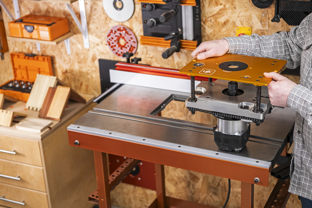 • With the UJK Router Lift (sold separately) it fits UJK Router tables and most router table set-ups (305 x 229 x 6mm)