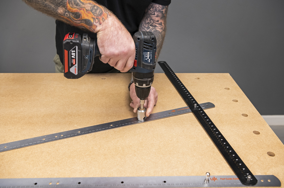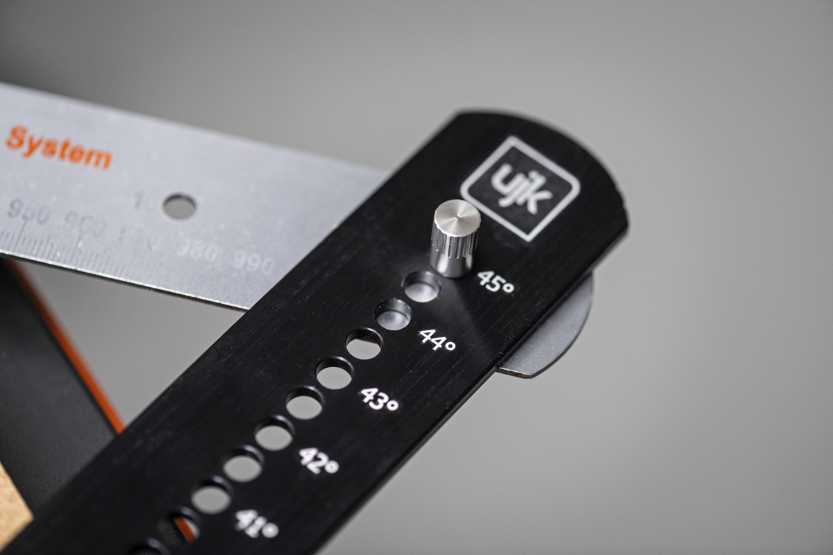 Introducing the UJK Parf Protractor, the ultimate addition to the UJK Parf MKII Guide System, designed for precision woodworking. This ingenious tool allows you to create a series of 20mm dog holes, ranging from 0-45° and 45-90°, with precise angle measurements in 0.5° increments. Varied marking holes provide the most precise angle at each point, eliminating any chance of cumulative error, and ensures accurate cuts.